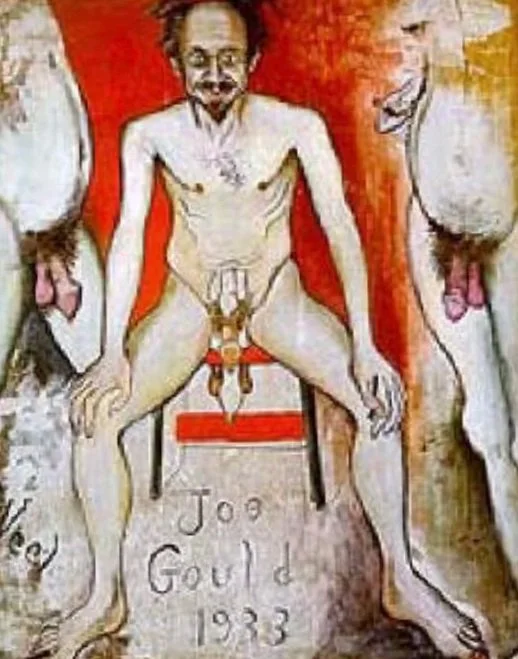 Ik noem het [schilderij] "Joe Gould", maar eigenlijk zou ik het "Een portret van een exhibitionist" moeten noemen. [...] Ik wil niet zeggen dat Joe een exhibitionist was. Ik weet zeker dat hij dat niet was - in de strikte zin van het woord. Maar toch, eerlijk gezegd, kreeg ik jaren geleden als ik hem op feestjes gadesloeg altijd het gevoel dat er een oude exhibitionist in hem huisde die eruit probeerde te kruipen, als een spin die in een fles opgesloten zit.